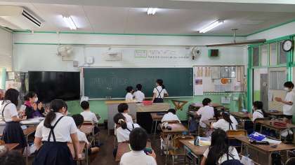 最初は国語係でした。漢字の音読み訓読みをそれぞれ順番に前に書き、連想できる漢字を当てるクイズです。今までに習った漢字のクイズだけでなく、自分たちで本を借りてきて一生懸命考えて問題を出していました。