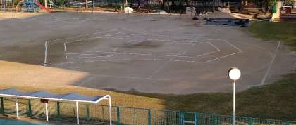 運動場には昨日に白線で描かれた「校章」が子どもたちを待っています。