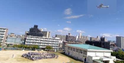 午前10時35分頃、南東の方から、セスナ機が学校に向かってきました。