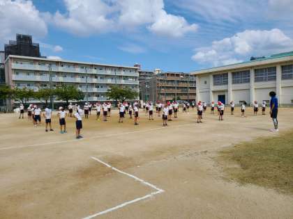 準備体操と整理体操は、運動会でも行った音楽を使用した体操で、2年生も4年生も楽しく体を動かしました。