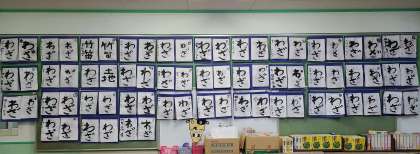 ひらがなを練習するのは初めてのことなので、子ども達がとまどう姿も見受けられましたが、今日のめあての「折れ、折り返し」に気を付けながら一文字一文字ていねいに書くことができました。