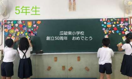「瓜破東50年の歩み、そして未来へ!」をテーマに、1〜5年生までは、事前に収録した動画での発表でした。