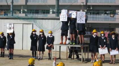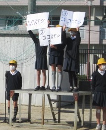 代表委員会の子どもたちが、学校のことを調べたことを生かして、クイズを出しました。