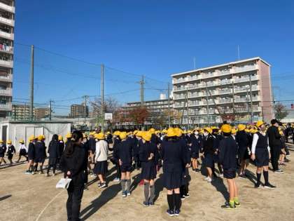 12月3日午前9時28分ごろ、紀伊水道を震源とする地震がありました。その時間、本校では1時間目の学習中でした。揺れを感じるとともに、緊急の校内放送で指示をおこない、全校児童が運動場に避難しました。