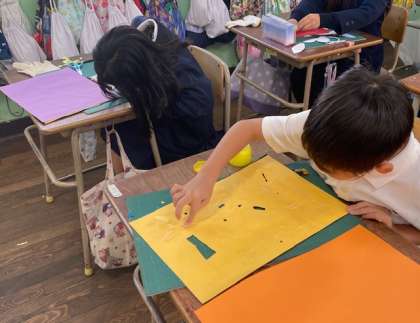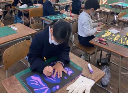 図画工作科の学習で,カッターナイフを用いて切り絵をしました。