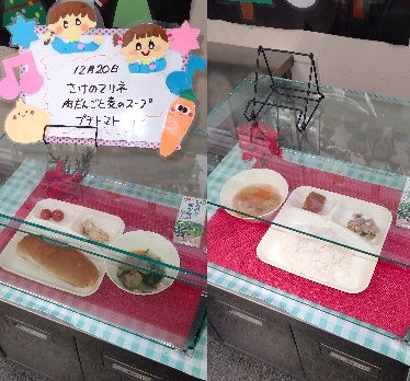 12月20日(月)さけのマリネ 肉だんごと麦のスープ プチトマト