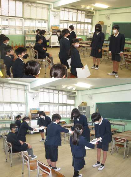 次にメンバー一人一人から6年生へ、最後に6年生から班のメンバーへお別れの言葉を伝えました。