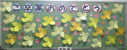 校内のあちこちに、卒業をお祝いするメッセージが掲示されています。