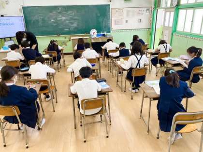 算数科の授業では、クラスの人数を半分に分けて、より深い学びを得られる環境づくりをしています。