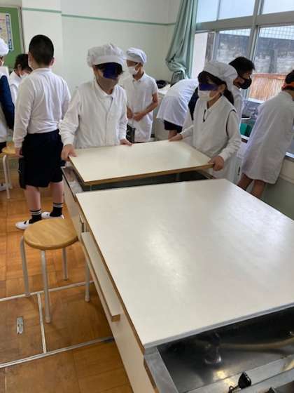 コロナ禍のため,換気に気を付けながら,全員が点火つまみを回しました。