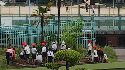 2年生の生活科の学習で、野菜を育てます。 その準備のための畑づくりを みんなで力をあわせてしました。