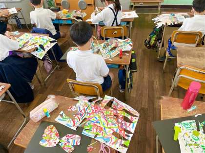 前回の図工の時間に作成していた画用紙を使って作品の仕上げをしました。