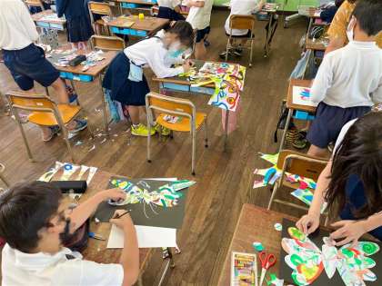 一人一人の個性が詰まった画用紙は、きれいなちょうに生まれ変わりました。