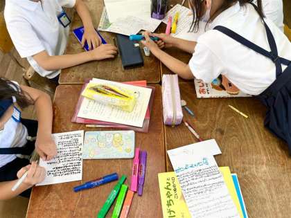 国語科の学習で、2年生に紹介する本の新聞づくりをしています。