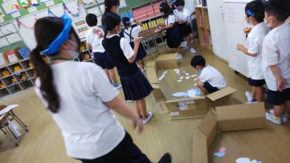 先生も子どもたちと一緒におまつりを楽しんでいます。