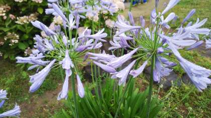 瓜破東小学校の中庭の紫陽花の横で咲く、