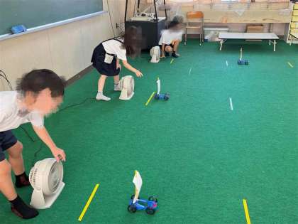 自分たちで組み立てたクルマがぐんぐん進む姿に、子どもたちは喜びを隠せない様子でした。