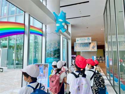高速エレベーターに乗り込む瞬間は、とてもドキドキした様子でした。