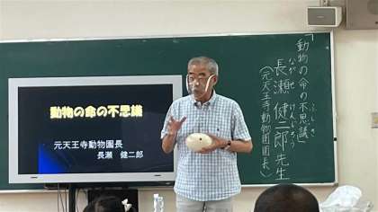 長瀬先生は元天王寺動物園の園長で、今回は子どもたちに「動物の命の不思議」をテーマにして、たくさんのお話をしてくださりました。