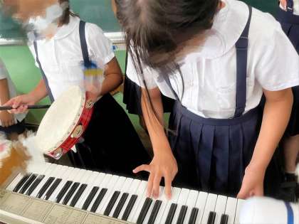 暑さ指数が高くなかなか外に遊びに行けない日のお昼休み、4年生の教室から何やらにぎやかな音楽が聞こえてきました。