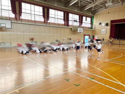 並び方の確認したり、実際に競技をやってみたり、本番さながらの盛り上がりが見られます。