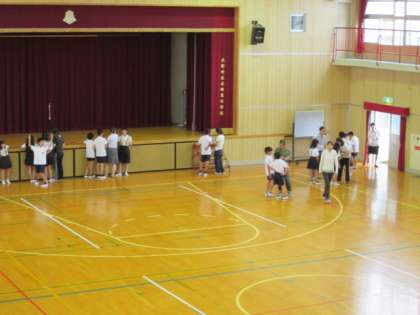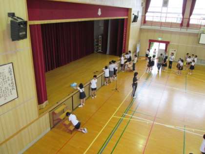 7月6日(月)、いつものように児童朝会を終えた後、各登校班の班長さんが、講堂に残りました。月に一度、各班長と担当の教員が、チェックカードの項目を確認しながら、登校の様子を振り返っています。