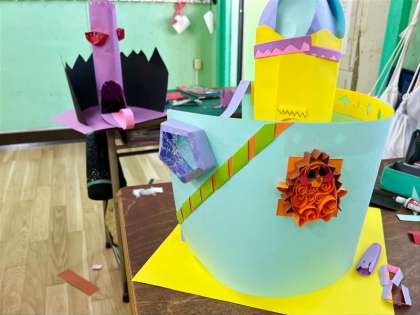 4年生の図画工作の作品がだんだん仕上がってきました。
