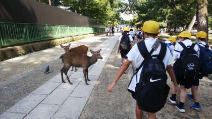こどもたちは、たくさんの鹿さんの数に驚いていました。