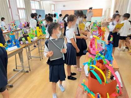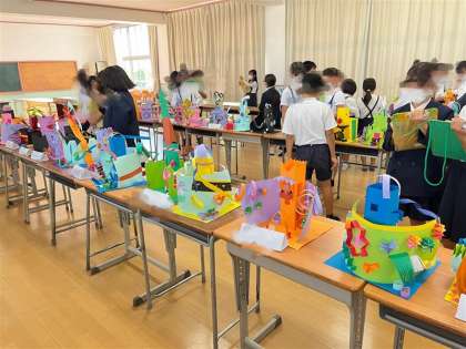 4年生全体で鑑賞し合い、それぞれいいなと思った作品の作者に質問をしました。