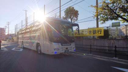 修学旅行への希望に満ち溢れたバスは輝いていました。