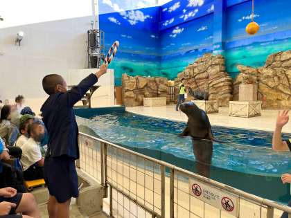 アミーゴ! 修学旅行22 アシカ名人!? 公開日 2022/10/20 更新日 2022/10/20 6年生 アシカショーでお手伝いの役に選ばれました。 見事にその大役を果たしていました。 いいね(0)
