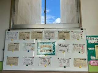 図書室前の廊下には、5・6年生の図書委員と教職員のおすすめの本が紹介されています。