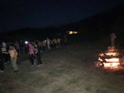 クラスごとのスタンツや先生方のスタンツなど、様々な出し物で盛り上がりました。歌を歌ったり、みんなで踊ったりしながら、参加者全員の思いが1つになりました。自然の闇の中で、貴重な体験ができました。