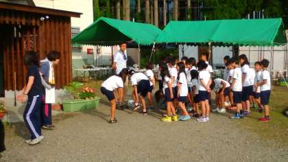 いよいよ林間学習最終日となりました。2日間の疲れも見られます。「早く大阪にかえりた〜い。」「もっとハチ高原に残っていた〜い。」など、子ども達の思いは様々ですが、最終日の日程がスタートしました。