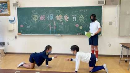 体育委員さんは、よい姿勢のための【トレーニング】を教えてくれました。