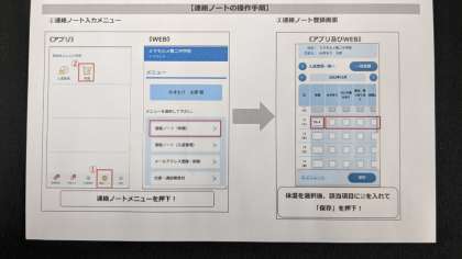 2の『連絡ノート』は、毎日の体調確認(検温含む)になりますので、全員入力をお願いします。