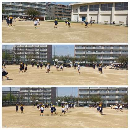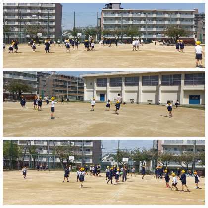 運動場では、ドッジボールや鬼ごっこをして遊んでいます。