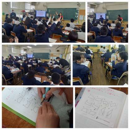 図形の特ちょうを調べよう 友だちと考えを伝え合い、学びを深めています。
