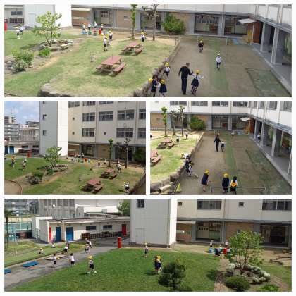 子どもたちは、元気いっぱいに中庭や運動場で遊んでいます。