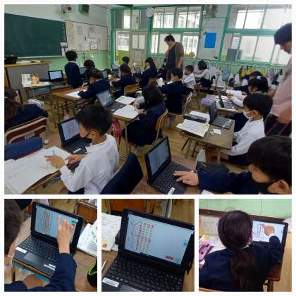 タブレット端末に表示される図を囲むことで、自分の考えを整理することができます。