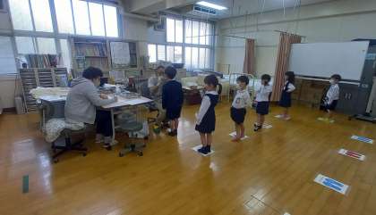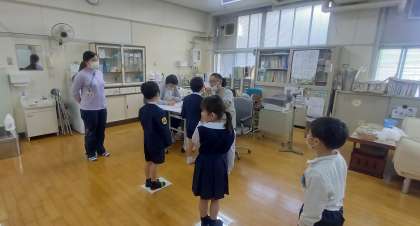 学校歯科校医先生に来ていただき、全学年児童の歯科健診を行っています。