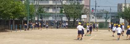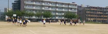 運動場では、先生も一緒にドッジボールや遊具遊びを楽しんでいます。
