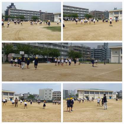 子どもたちは、一輪車や竹馬の練習をしたり、ドッジボールをしたりと楽しく遊んでいます。