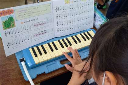 子どもたちが心を一つに、歌ったり演奏したり楽しく学習しています。