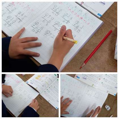 ひっ算をマスターするために、どんどん問題に取り組んでいます。