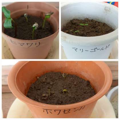 3年生が理科の学習で、ヒマワリ・ホウセンカ・マリーゴールドの種をまきました。