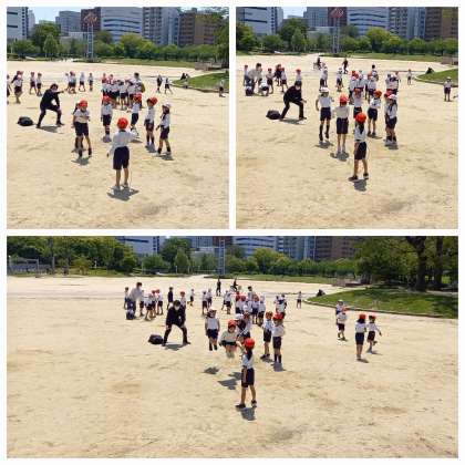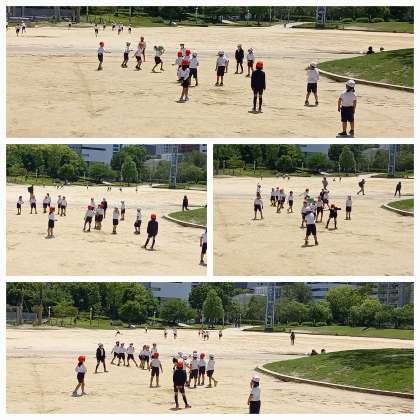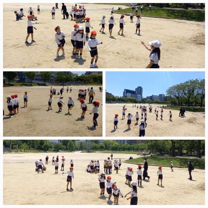グラウンドで大縄跳びやドッジボール、鬼ごっこで遊びます。