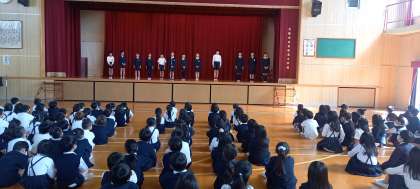 全校児童の前で「瓜破東小学校を少しでもよくしたい」という思いを話す姿が、とても頼もしく感じました。