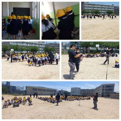 今日は、1階理科室から火災が発生したと仮定し、運動場へ避難しました。