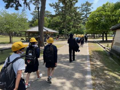 外国人の方々を見かけると、学習した英語を使ってみようとがんばっているうりひがっこの姿がありました。